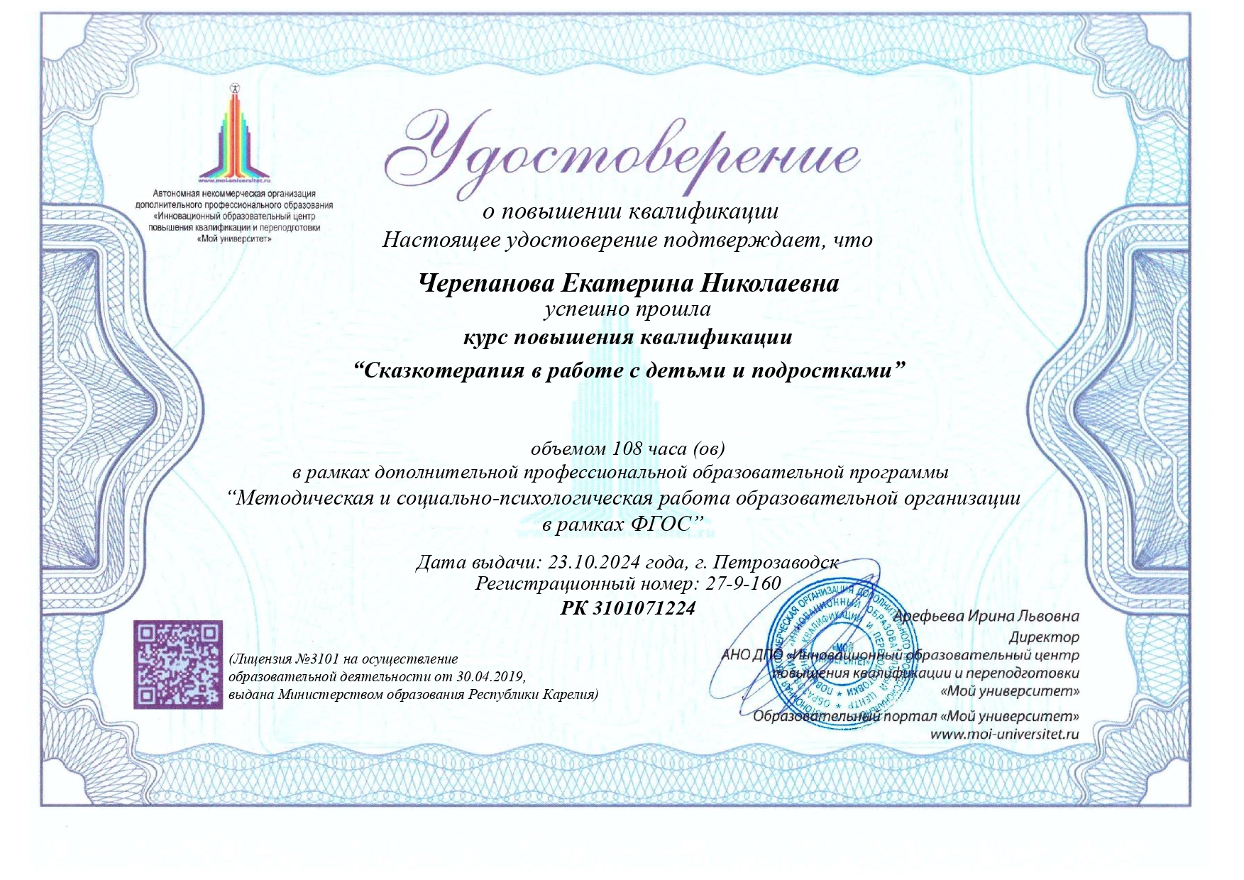 (Автономная некоммерческая организация Дополнительного профессионального образования "Инновационный образовательный центр повышения квалификации и переподготовки". 108часов. Форма обучения: Заочная. Направленность: иное).